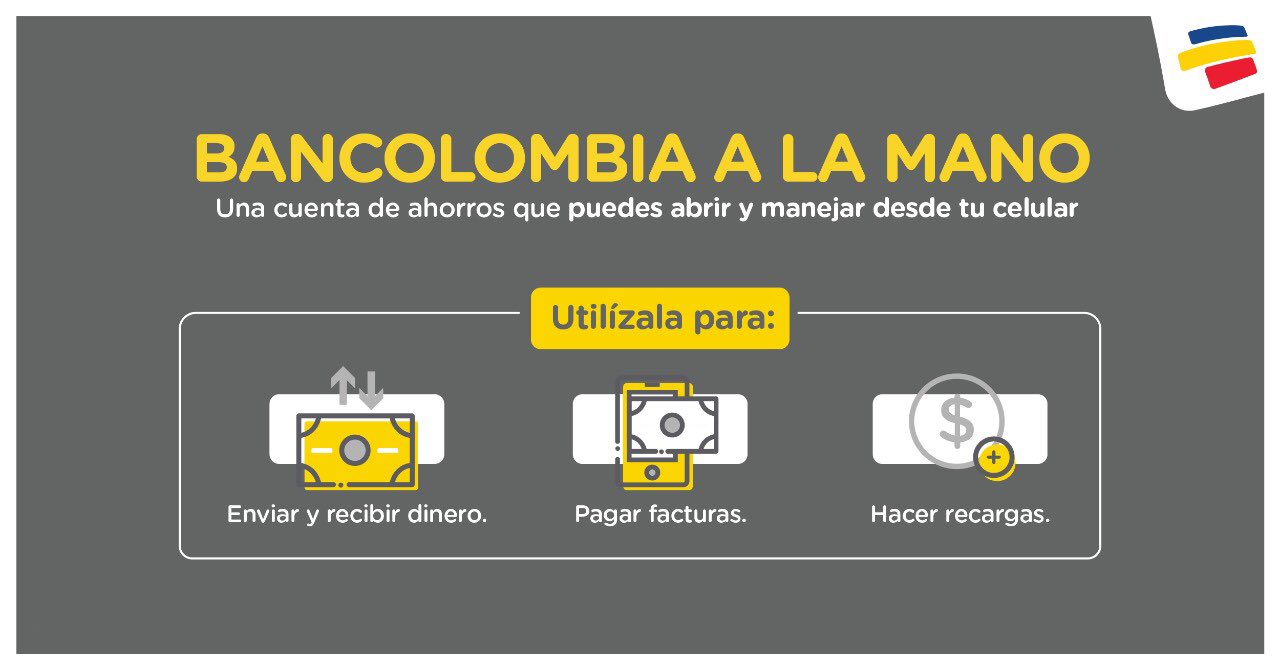 Bancolombia A La Mano / Bancolombia A La Mano Cerro 2018 Con Mas De Un Millon De Cuentas Y 22 000 Creditos Otorgados Por Celular Unipymes Diplomados Virtuales Cursos Empresariales : Con bancolombia a la mano tenemos en nuestro bolsillo una forma rápida y.
